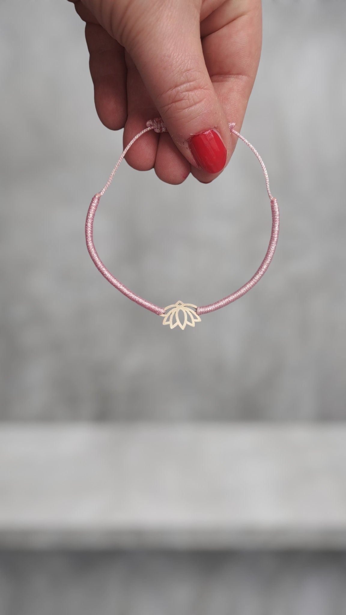 Lotus Flower Bracelet | Handmade Pink Glitter Bracelet | Adjustable Macramé Rope Bracelet | Silver Lotus Jewelry | Minimalist Bracelet