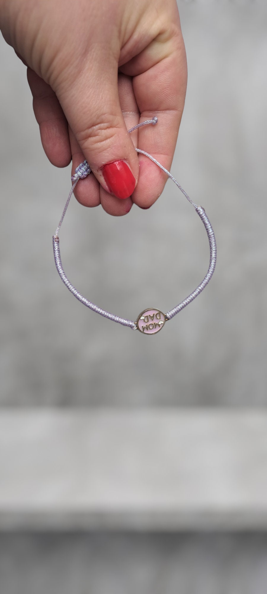 Mom and Dad Bracelet | Engraved Silver Pendant Family Bracelet | Adjustable Macramé Glitter Fabric Bracelet | Handmade Sentimental Jewelry